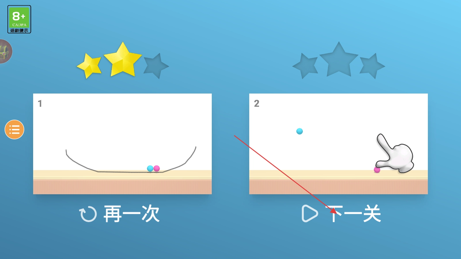 划线物理互动:通过划线引导小球移动,利用重力、缓冲等物理机制完成目标,尝试不同线条形状可获得意想不到的移动效果。