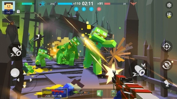 2.你可以借助滑动虚拟摇杆来控制角色在战场上的移动,点击瞄准键就能切换至瞄准模式,再点击射击键即可完成射击操作。