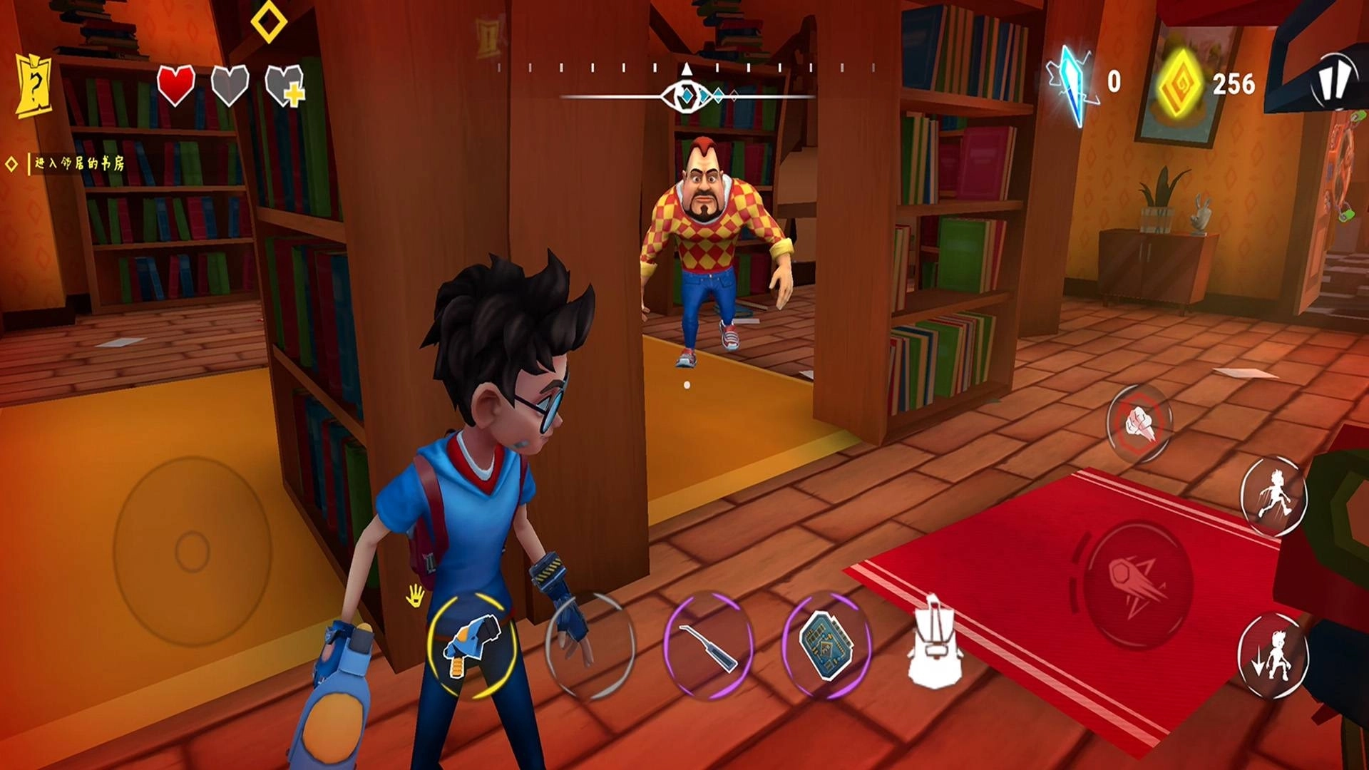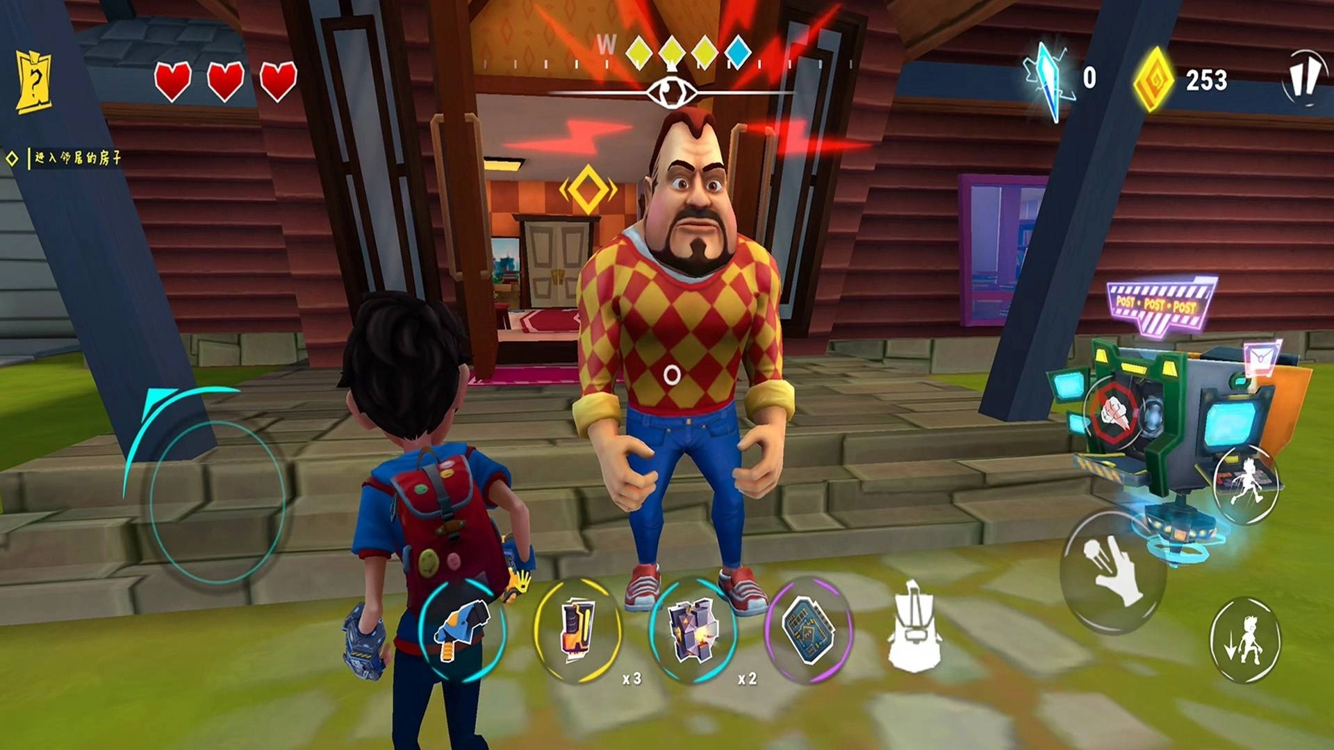 2.城堡内会有邻居巡逻,玩家得借助掩体、柜子或者阴影来避开对方的视线。要是不小心被发现了,能暂时找地方藏起来,也可以用道具去干扰对方。