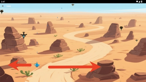 1、滑动屏幕操控战机移动,躲避敌方弹幕攻击。