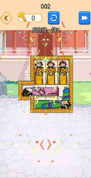 妃子挤一挤是一款超有意思的后宫主题益智闯关小游戏!游戏中,玩家需要把不同形状的妃子巧妙安置到指定区域,填满所有空格就能通关。它采用可爱的卡通画风,结合了华容道与拼图的玩法,十分适合喜欢轻松解谜的玩家。只有将整个格子完全填满,才能完成当前关卡的挑战哦。