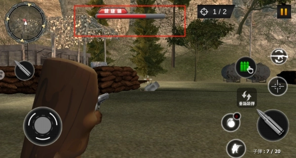 4、时刻留意上方的血条显示,在射击的同时要注意规避敌人的攻击,确保自身血量处于安全状态。