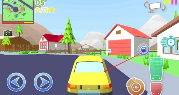 2、想开车?走近汽车,点一下就能上车或下车。绿色按键加速,红色倒挡,橙色刹车,简单得很。