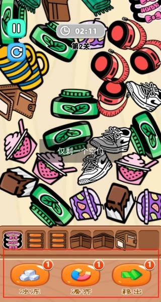 3、当只剩下一个空位时,即可使用道具将其消除,从而顺利过关。