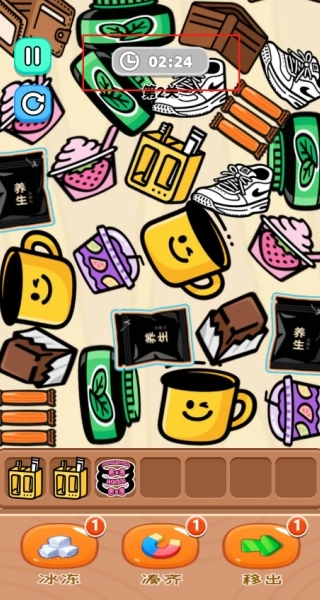 2、进入关卡1后,请仔细观察画面,把相同的图标逐个放到一起,它们会自动消除。