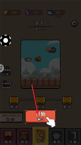 1.进入游戏后,游戏界面包含商城、背包、战斗、角色、天赋等功能模块。
