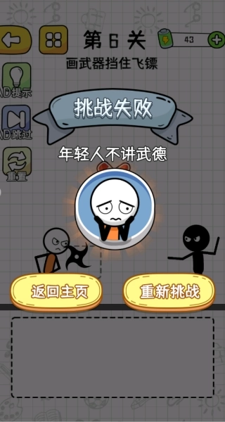 4、当火柴人角色挑战失败时,会呈现出各式各样夸张又诙谐的反应动画,往往能让人忍不住笑出声来,发自内心地感到愉悦。