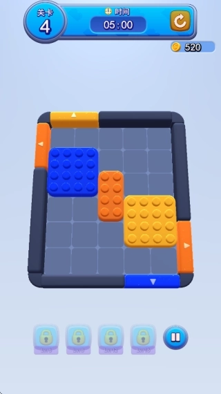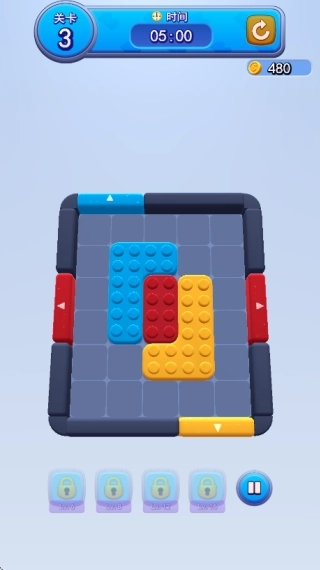 2.核心规则清晰:玩家需将不同颜色的积木方块精准移动至同色出口,当所有方块被移除即视为完成当前关卡。