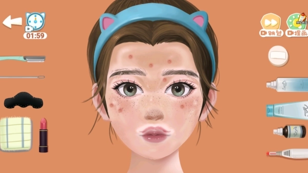 1、选择对应关卡即可开启任务,玩家需为角色进行全面面部清洁,根据不同肤质灵活选用专业护理工具完成清洁流程。