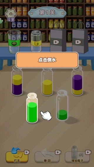 2、遇到多色液体混合的容器时,要提前规划好倾倒的先后顺序,避免因操作不当造成液体再次混合,从而增加后续处理的难度。 3、可以灵活利用空容器来充当临时中转站,特别是在处理多种颜色液体交叉混合的情况时,这样能明显简化分类的逻辑步骤。