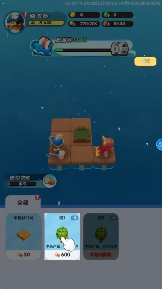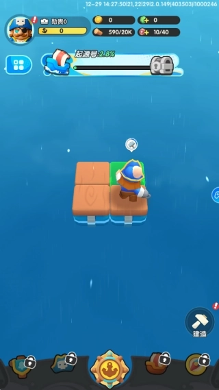 1、进入游戏后点击建造按钮进入船只扩建界面,优先收集海上漂浮的木筏碎片与基础建材,搭建初始生存平台,为后续建设打下基础。