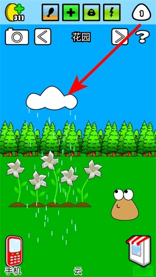 在花园里,能借助云来模拟降雨之类的天气,打造出多样的环境氛围,Pou在花园中同样可以获得放松,让和Pou互动的场景与体验变得更加丰富。