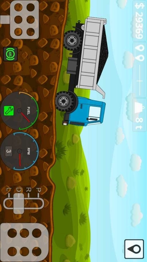 2、驾驶不同载重的车辆,运送货物抵达终点,注意避免翻车;