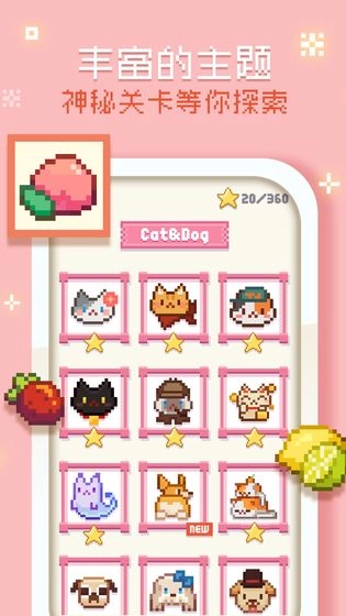 3、不少图案需要解锁才能获取,完成当前关卡即可解锁下一关,以此类推,多种不同样式的关卡正等待你来挑战拼接。