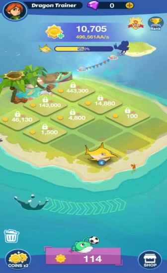 3、管理更多珍贵的鱼类,并能够连续购买低级鱼类以进行合成升级。