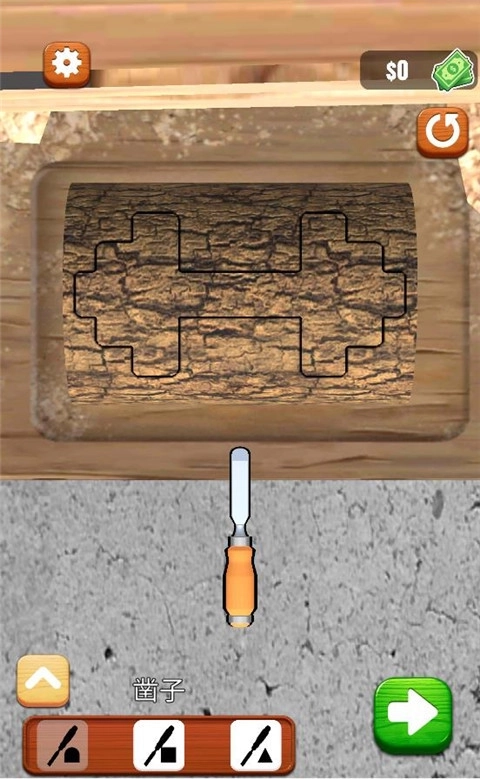 3、多样的关卡挑战,每一关都有着不同的规则设定,你也能够随性发挥,开展削木头的操作。