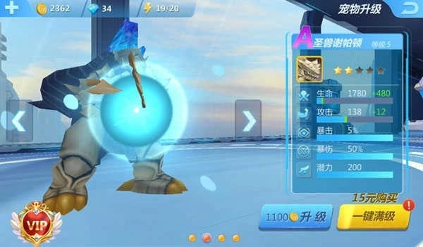 A级宠物圣兽谢帕顿同样实力强劲,获取门槛较低,连续登录七天即可获得。该宠物技能为恢复系技能,能够显著提升玩家的续航能力。