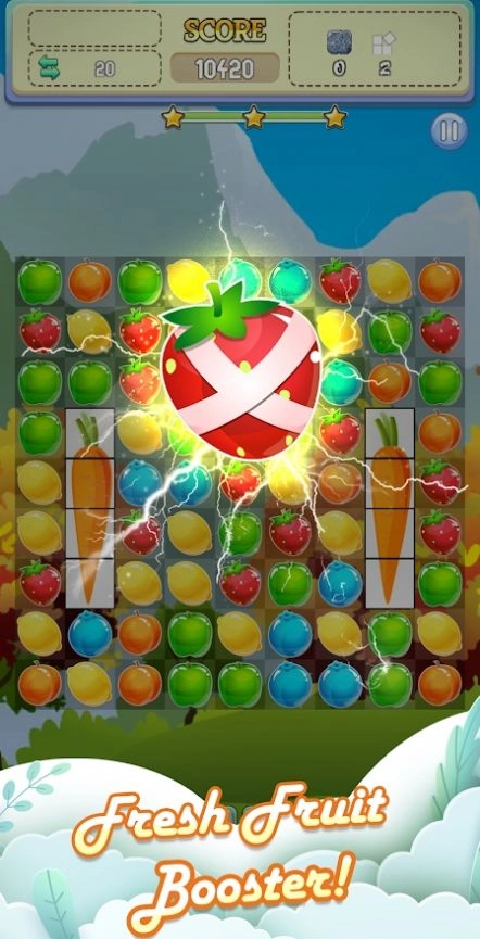 3、连线消除的晶石数量越多,获得的分数就越高哦,水果暴躁狂不仅关卡丰富,玩法也十分有趣呢。