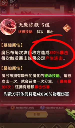 1、终极技能天魔炼狱:向敌方武将发起攻击,造成890%的物理伤害。