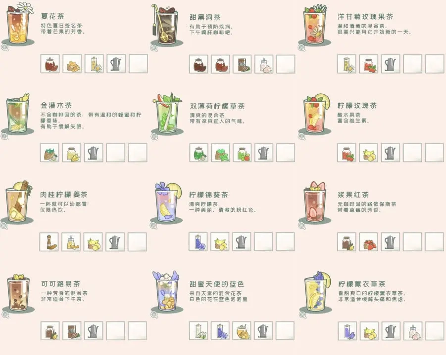 这是一款玩法极为丰富的模拟经营游戏,游戏那格外温馨的画面能让玩家轻松沉醉其中,每个角色都刻画得生动形象。在这里,你可以制作各式各样的茶类饮品,甚至包括咖啡,不过前提是得先调制好茶叶才行。茶叶的种类也十分丰富,玩家可以自由探索,尽情享受这款高自由度的模拟经营游戏。