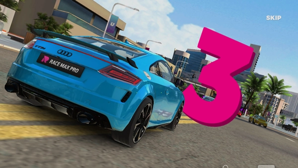 2、游戏开始前会播放一段展示赛车全貌的动画,点击右上角即可跳过。
